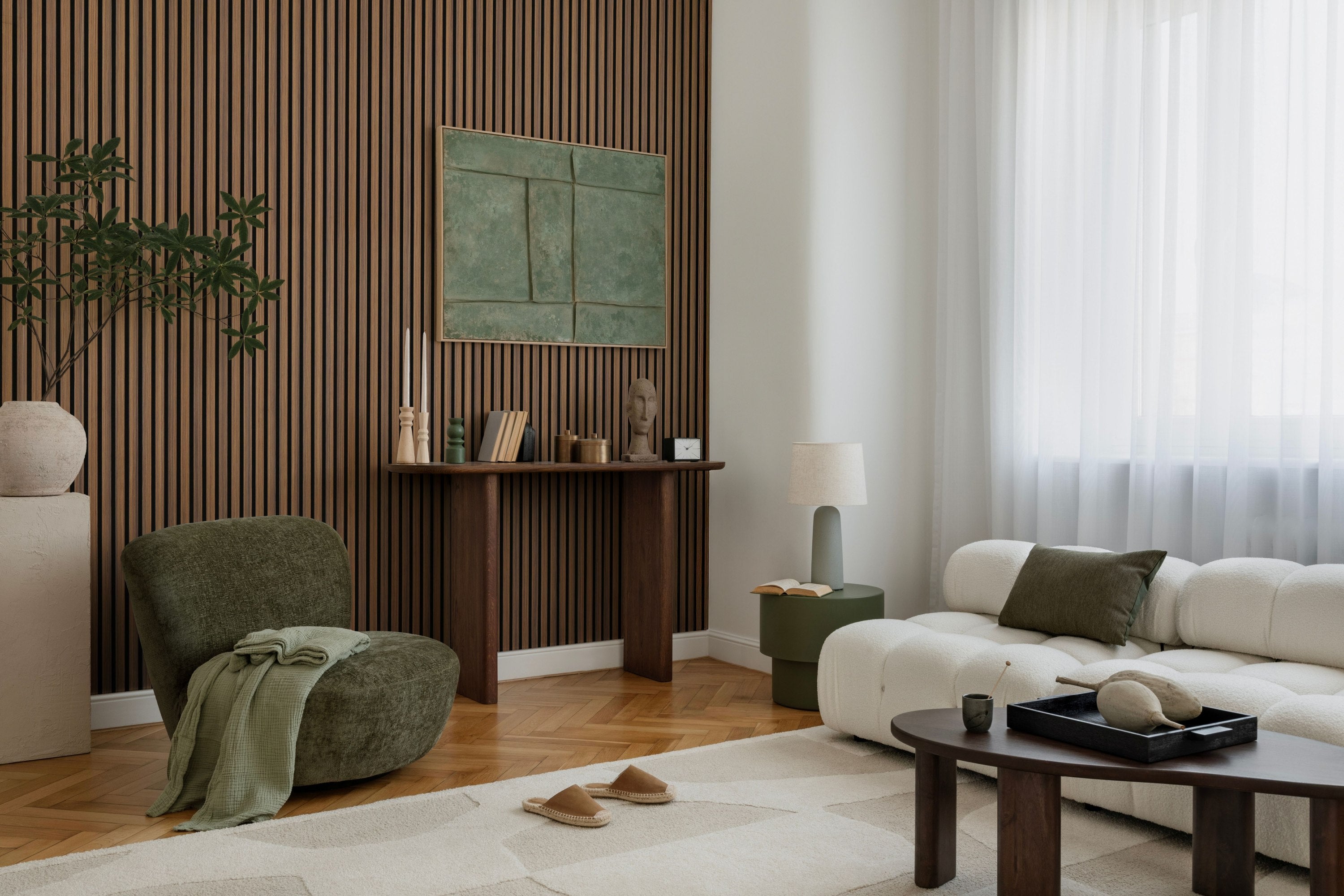 Sonik Slatwall panels feature a premium real oak veneer finish, delivering natural warmth, texture, and timeless style. Precision-engineered for a clean, modern look, each panel brings a high-end architectural feel to walls and ceilings.